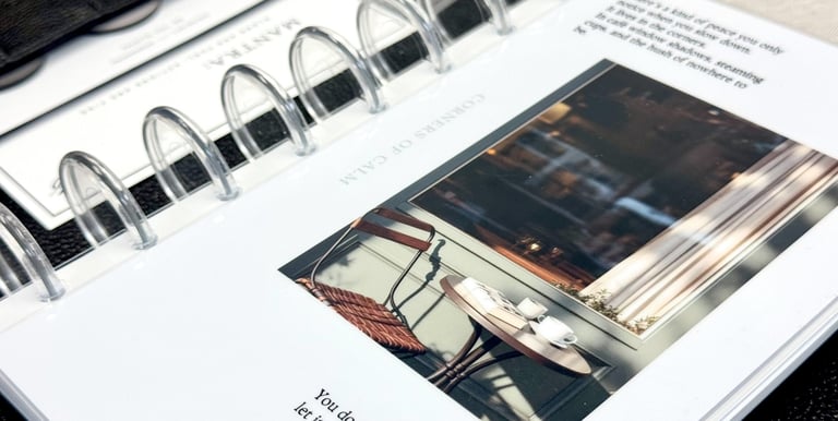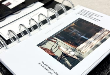 Let quiet moments find you with the "Corners of Calm" Laminated Dashboard a visual whisper of serenity for your planner. This design features a softly lit café scene with two cups, a book, and sheer curtains filtering morning light. Accompanied by poetic text, it evokes the hush of stillness, the comfort of companionship, and the beauty of slowing down. Perfect for journaling, goal setting, or simply grounding your day, this dashboard blends aesthetic warmth with emotional resonance, making it a lasting companion in your planner.
